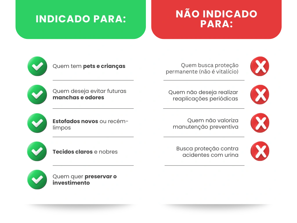 A proteção age no momento do acidente, dando tempo para a limpeza imediata e evitando danos permanentes ao estofado.